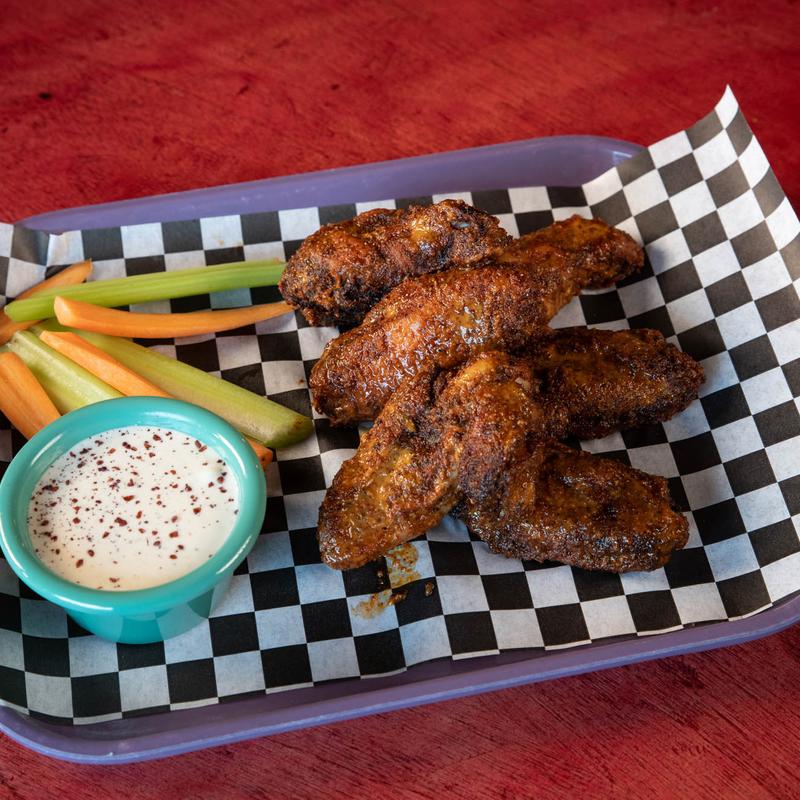 House smoked chicken wings, house IPA buffalo sauce, carrot, celery. House dressing: ranch, blue cheese, or BBQ sauce.